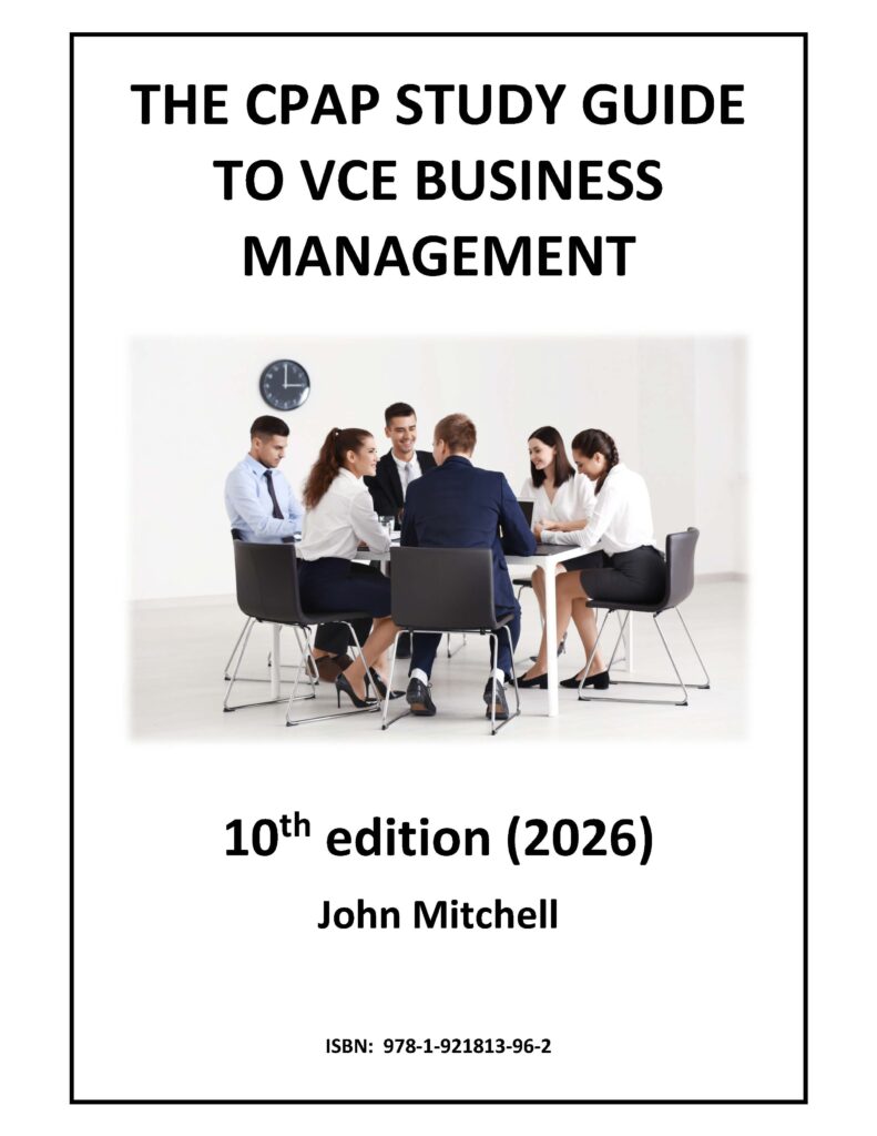 The CPAP Study Guide to VCE Business Management is a publication that is designed to supplement any senior VCE Business Management text. The new 10th edition is currently being revised by the author, John Mitchell, and closely follows the 2023-2027 Study Design. The Study Guide will follow the same format as previous editions to include the key information students require to successfully complete the VCE Business Management Unit 3 and 4 course. The author will use his years of experience as a teacher, presenter and examination assessor to cover the key knowledge and skills in a way that focuses upon preparation for assessment tasks, in particular, the end of year examination. The 10th edition will include the latest ‘exam tips’ as well the inclusion of any new developments relating to theory/practice and/or interpretations of the new Study Design. The publication will also include an updated ‘Bonus End of Year Examination’, updated mini-exams relating to each area of study and revised ‘You be the Assessor’ sections that have proved to be popular for students preparing for assessment tasks throughout the year. Orders for this publication can be made by sending an email to CPAP with a school order number or alternatively visiting the CPAP sales section of the website.
