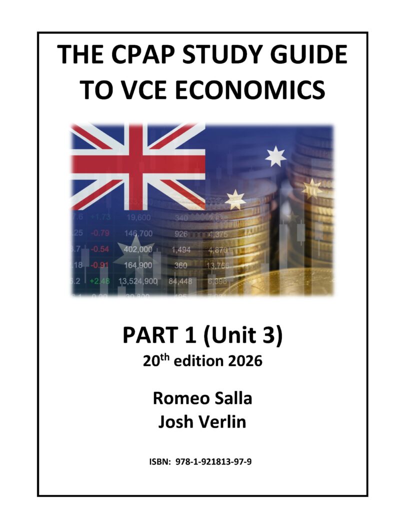 he CPAP Study Guide to VCE Economics will be revised and updated for 2026. The new 20th edition will continue with the same style and themes as previous editions and will remain a publication that is designed to supplement any senior VCE Economics text. It will include the key content that students require to successfully complete the newly accredited course. In addition, the Study Guide it will retain the popular exam tips that appear throughout the publication, as well as the valuable ‘You be the Assessor’ sections at the end of each area of study and the detailed examination advice at the end of Part 2. The Study Guide will once again be released in two parts. Part 1 will be released in January and covers material relating to Unit 3 of the VCAA Study Design, divided into areas of study 1, 2 and 3. Part 2 will be released in June and covers material relating to Unit 4, divided into areas of study 1 and 2. The later date for Part 2 has the advantage of incorporating the latest economic developments and statistics, including the 2026-27 Commonwealth Budget.